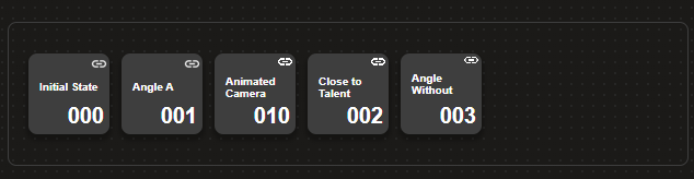 Each camera button allows you to switch to pre-defined camera angles, on